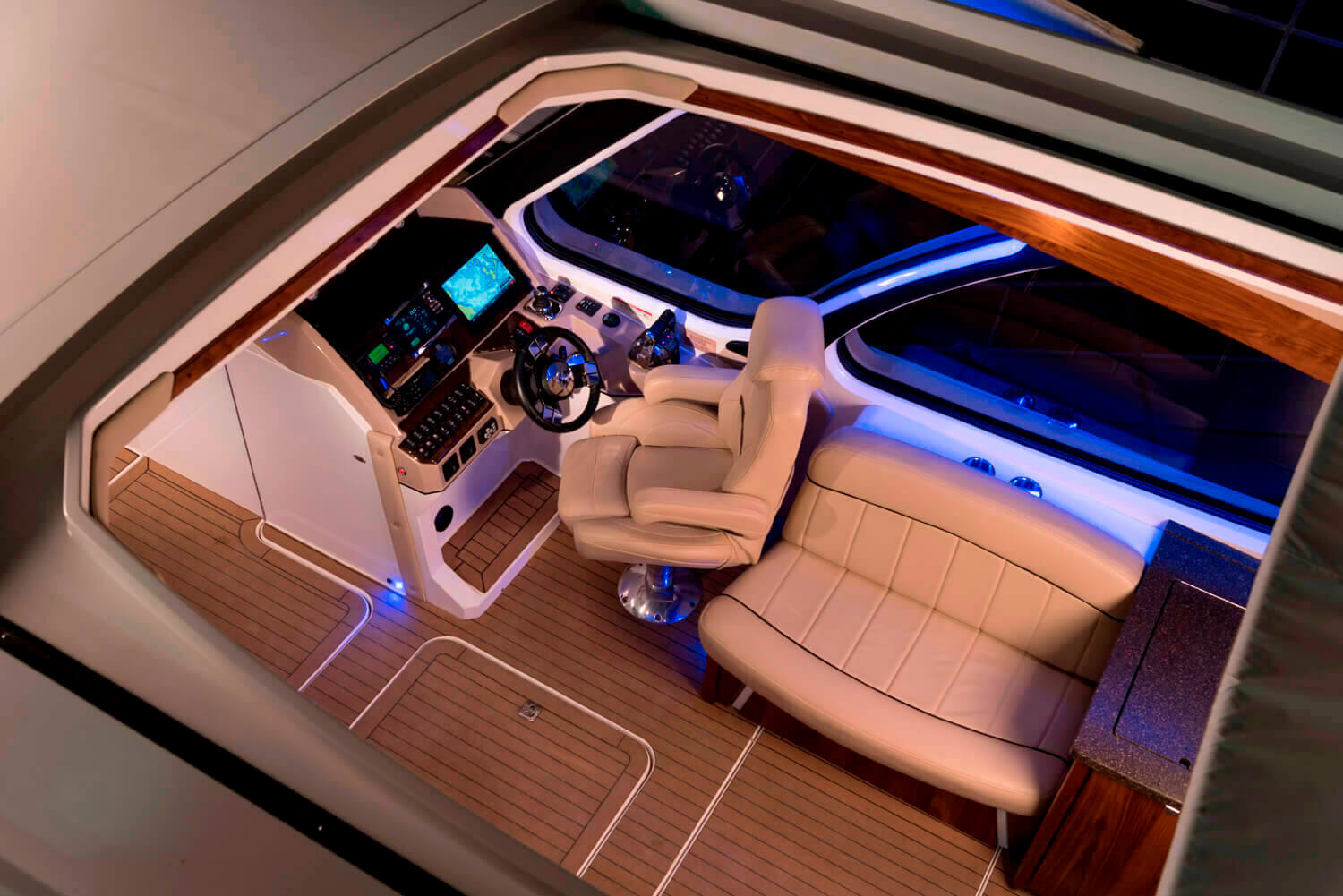Windy and stormy or sunny and calm, you’ll always feel perfectly at ease behind the controls of the Afina. An advanced GPS navigation system will keep you on track, and joystick steering makes for tight turns and simple dockside navigation.