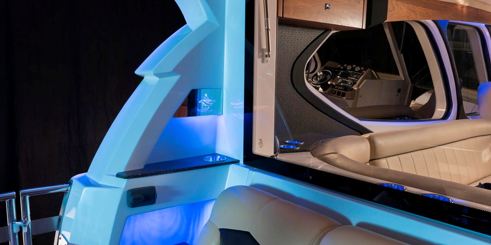From the exterior to the interior, the Afina yacht is created with stunning attention to detail. Take advantage of the fully retractable roof on a beautiful day, or head below deck to the spacious stateroom. At night, dimmable LED lighting can set a romantic or energizing mood. Comfortable and adjustable chairs and lounging areas make this an unbelievable experience for you and your guests.