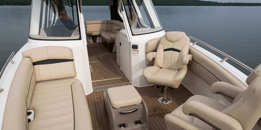 Windy and stormy or sunny and calm, you’ll always feel perfectly at ease behind the controls of the Afina. An advanced GPS navigation system will keep you on track, and joystick steering makes for tight turns and simple dockside navigation.